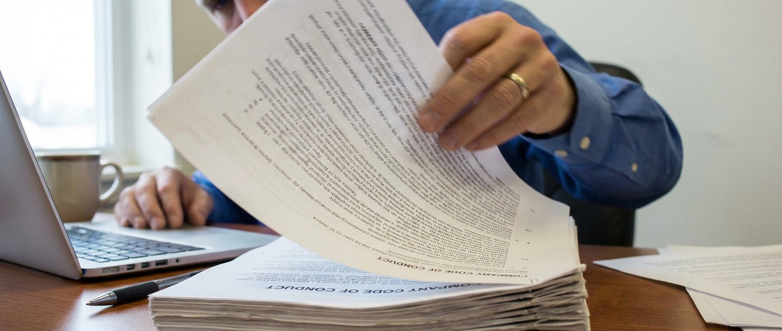 In large companies with thousands of employees, Codes of Conduct often span 80 to 100 pages, covering conflicts of interest, harassment, data privacy, and reporting procedures. While comprehensive, these documents are dense and difficult to navigate under time pressure. Research from Ethisphere’s Global Ethics Survey reinforces that ethical culture depends on accessibility and clarity, not just documentation.